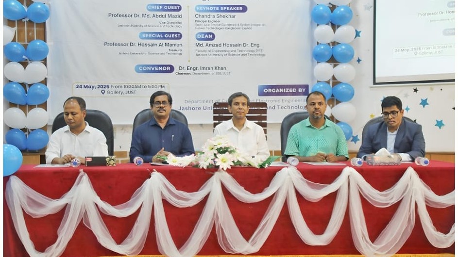 যশোর বিজ্ঞান ও প্রযুক্তি বিশ্ববিদ্যালয়ের (যবিপ্রবি) ইলেক্ট্রিক্যাল অ্যান্ড ইলেকট্রনিক ইঞ্জিনিয়ারিং (ইইই) বিভাগের সেমিনার ও প্রশিক্ষণ কর্মশালার মধ্য দিয়ে পর্দা উঠলো মাস ব্যাপী কনফারেন্স কার্নিভাল ২০২৫’র। মাসব্যাপী এই কনফারেন্স কার্নিভাল ২০২৫ এর শুভ উদ্ধোধন করেন যবিপ্রবি উপাচার্য অধ্যাপক ড. মো. আব্দুল মজিদ।