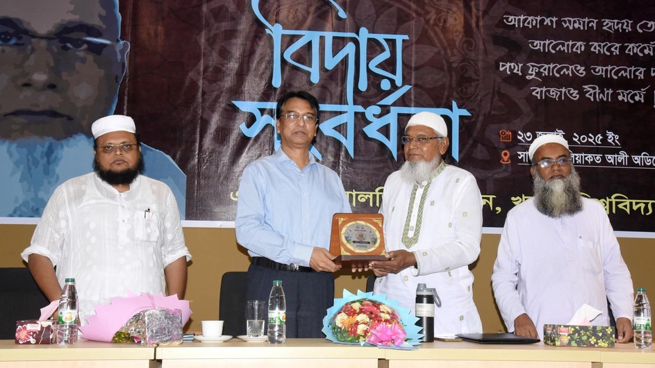 খুলনা বিশ্ববিদ্যালয়ের এগ্রোটেকনোলজি ডিসিপ্লিনের প্রফেসর ড. মোঃ আব্দুল মান্নানের কর্মজীবনের সফল সমাপ্তিতে এক হৃদয়ছোঁয়া বিদায় সংবর্ধনার আয়োজন করা হয়। মঙ্গলবার (২৩ জুলাই) সকাল ৯টা ৩০ মিনিটে বিশ্ববিদ্যালয়ের সাংবাদিক লিয়াকত আলী মিলনায়তনে আয়োজিত এ অনুষ্ঠানে উপস্থিত ছিলেন শিক্ষক, শিক্ষার্থী, কর্মকর্তা-কর্মচারী এবং তাঁর পরিবারের সদস্যরা।
