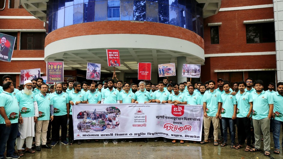 মাওলানা ভাসানী বিজ্ঞান ও প্রযুক্তি বিশ্ববিদ্যালয়ে (মাভাবিপ্রবি) 'জুলাই-আগস্ট গণঅভ্যুত্থান দিবস’ উপলক্ষে দিনব্যাপী বিভিন্ন কর্মসূচির আয়োজন করা হয়। কর্মসূচির সকল পর্বে বিশ্ববিদ্যালয়ের ভাইস-চ্যান্সেলর অধ্যাপক ড. মোঃ আনোয়ারুল আজীম আখন্দ উপস্থিত থেকে অনুষ্ঠান উদ্বোধন করেন।