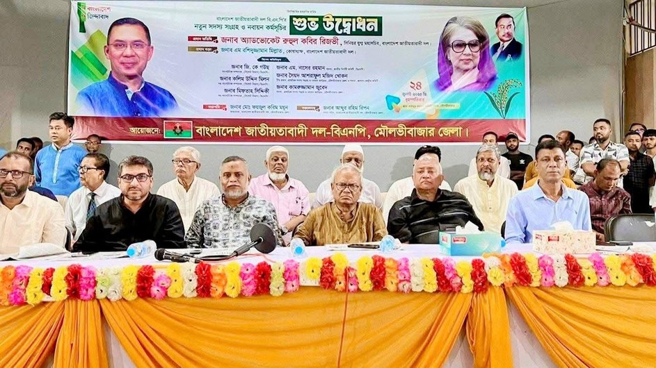 বৃহস্পতিবার (২৪শে জুলাই) দুপুরে মৌলভীবাজার এম সাইফুর রহমান অডিটোরিয়ামে জেলা বিএনপি'র সদস্য সংগ্রহ ও নবায়ন কার্যক্রম উদ্বোধন উপলক্ষে আয়োজিত সভায় প্রধান অতিথির বক্তব্যে তিনি এসব কথা বলেন। রুহুল কবির রিজভী আরও বলেন,বিগত দিনে স্বৈরাচারী শেখ হাসিনা মিথ্যা মামলা দিয়ে বিএনপি'র নেতাকর্মীদের দিনের পর দিন,মাসের পর মাস জুলুম, নির্যাতন ও অত্যাচার করেছেন। সেই মামলায় আমি ও আমাদের নেতাকর্মীরা জেল খেটেছি জেলা বিএনপি'র আহ্বায়ক ফয়জুল করিম ময়ূনের সভাপতিত্বে এবং জেলা বিএনপি'র সদস্য সচিব আব্দুর রহিম রিপন এর উপস্থাপনায় উক্ত অনুষ্ঠানে প্রধানবক্তা ছিলেন বিএনপি'র কেন্দ্রীয় কমিটির কোষাধ্যক্ষ সাবেক এমপি রশিদুজ্জান মিল্লাত।